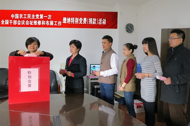 按照农工党陕西省委会《转发农工党中央<关于动员广大党员支持第一次全国干部会议会址维修和布展工作的通知>的通知》精神和要求,农工党西安市委会积极行动起来支持中国农工民主党第一次全国干部会议会址维修和布展工作缴纳特别党费,基层组织和广大农工党员积极响应号召,踊跃参加缴纳特别党费活动,黄河主委带领市委会班子成员积极带头,有的党员在外地发短信缴纳特别党费,作为一名农工党员,以缴纳特别党费的形式,表达了对农工党的感情。在短短的十几天里共缴纳特别党费51800元。