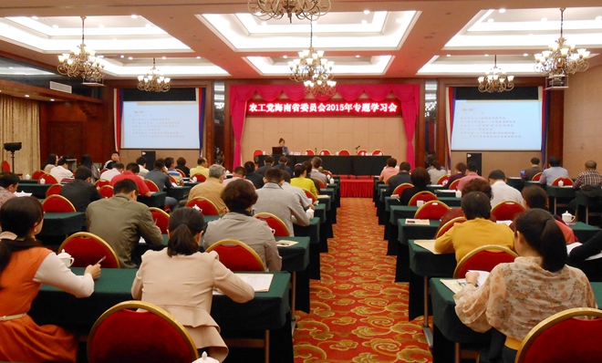 为学习贯彻落实中共十八届四中全会精神,深入开展坚持和发展中国特色社会主义学习实践活动,2015年4月11日,农工党海南省委会2015年坚持和发展中国特色社会主义学习实践活动专题学习会在海口召开。省委会专职副主委毕华,副主委、秘书长吉小妹出席会议,省委会各基层组织负责人、党员骨干、社情民意信息特约信息员等110余人参加学习。