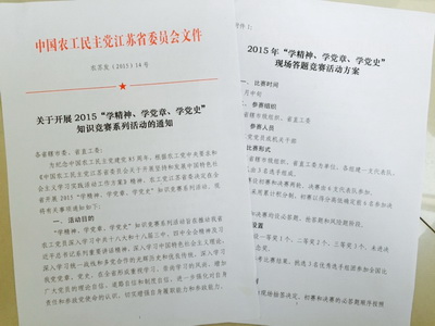 为纪念农工党建党85周年,推动坚持和发展中国特色社会主义学习实践活动向纵深发展,农工党江苏省委会认真贯彻落实农工党中央开展“学精神、学党章、学党史”知识竞赛系列活动部署,将知识竞赛活动作为加强广大党员思想建设的重要抓手,使之成为继2014年“中国梦·农工情”演讲比赛后又一重要学习实践活动。