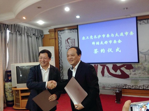 2015年4月25日上午,农工党长沙市委会与农工党大连市委会在长沙缔结友好市委会。中共大连市委常委、统战部部长董长海,中共长沙市委常委、统战部部长文树勋受邀出席签约仪式。农工党湖南省委会副主委、长沙市政协副主席、农工党长沙市委会主委龚振湘,农工党大连市委主委会田晓峰共同签署了《缔结友好市委会协议书》。仪式由农工党长沙市委会专职副主委洪霞主持。
