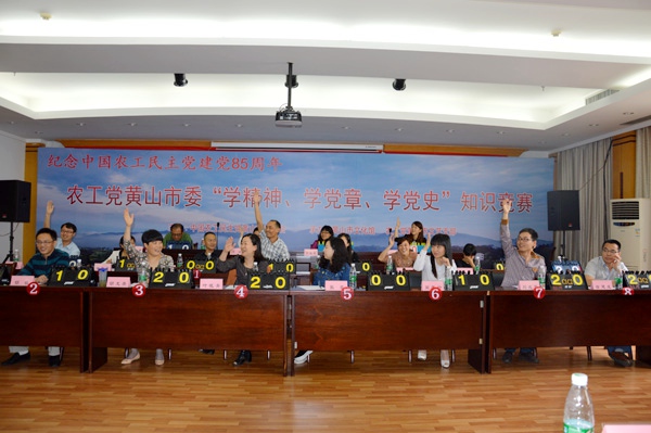 2015年5月10日,农工党黄山市委会为了庆祝中国农工民主党成立85周年,在屯溪举行“学精神、学党章、学党史”知识竞赛。黄山市政协副主席、农工党黄山市委会主委毕普民,中共黄山市委统战部副调研员、党派科科长余鑫泉,农工党黄山市委会副主委叶莉荣、吴江、张牧城观看了比赛并分别为一、二、三等奖选手颁奖。