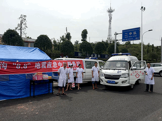 “8.8”九寨沟县地震发生后,农工党德阳市中江总支响应中江县民政局号召,迅速组织医卫支部党员、中江民仁医院医护人员前往成巴高速中江出口驻点,并24小时值班,对“8.8”地震回中江的受伤人员进行初诊及分诊。(农工党德阳市中江总支)