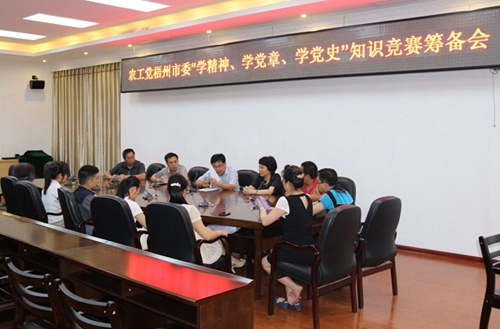 2015年5月4日下午,农工党梧州市委会召开专题工作会议,筹备“学精神、学党章、学党史”活动。为切实发挥基层成员的主体作用,会议召集部分党员骨干,对活动开展的内容和要求、方式和方法、阶段和步骤进行了充分的意见征询,并成立农工党梧州市委“三学”活动领导小组及相应工作机构。