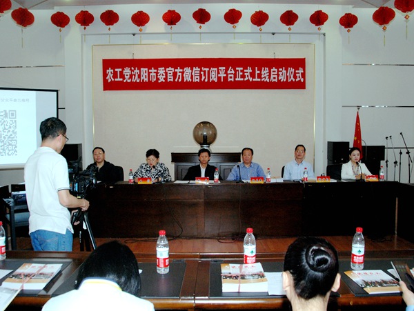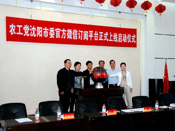 2015年5月20日下午,农工党沈阳市委会举行官方微信订阅平台(微信公众号:“沈阳农工”)正式上线运行启动仪式。农工党沈阳市委会主委赵午与副主委王莉、赵春杰、郭少武、孟令山及农工党辽宁省委会宣传部副部长王兵一同按动启动球。