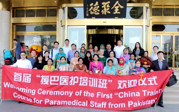 2015522日,巴基斯坦19名护理进修学员来天津市第一中心医院,接受为期一个月的进修学习。农工党天津市委会副主委侯欣一、市委会副秘书长刘绍文参加了欢迎仪式,并与巴基斯坦住旁遮普邦参赞就培训工作交换了意见。天津市第一中心医院党委书记陆伟、副院长郑虹,项目资助人路美国际控股集团董事长耿献会等参加了活动。