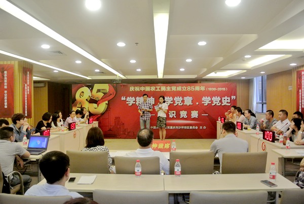 2015年5月27日,农工党重庆市沙坪坝区委会“学精神、学党章、学党史”知识竞赛在沙坪坝区党派大楼报告厅热烈开赛。市委会机关副巡视员胡小元和副调研员刘盛开应邀莅临活动,并担任比赛评委。