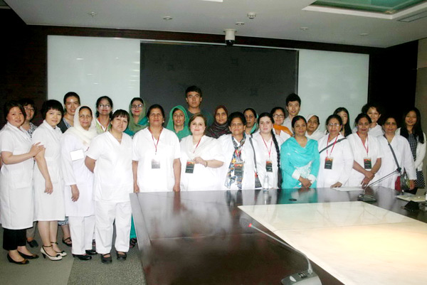 5月28日,农工党天津市委会在天津市第一中心医院,为在津进修巴基斯坦19名护理人员介绍天津发展概况。