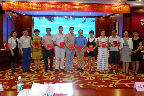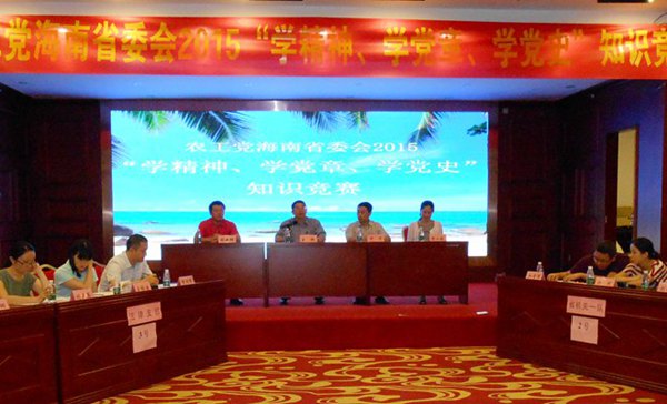2015年30日至31日,农工党海南省委会在海口举办“学精神、学党章、学党史”现场答题知识竞赛。省政府副省长、农工党海南省委会主委王路,省委会副主委毕华、吉小妹,农工党海口市委会主委张玉霞出席本次活动。中共省委统战部党派处张业雄处长应邀出席并讲话。