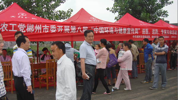 2015年6月5日,值第八届“中国环境与健康宣传周”之际,农工党郴州市委会与郴州市第一人民医院联合,组织以郴州市第一人民医院专家医师为主的医疗服务队近20人,在郴州市政协副主席、农工党郴州市委会主委熊波和市委专职副主委袁光校的带领下在桂阳县正和镇解放村开展大型义诊活动。