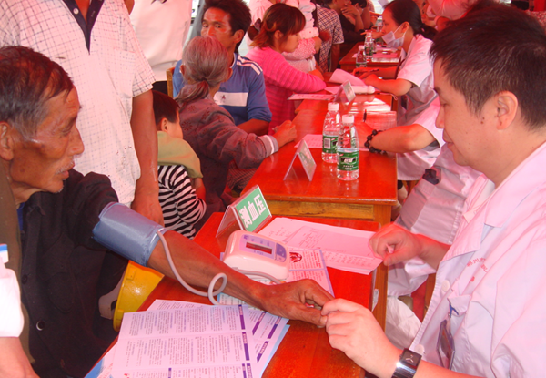 桂阳县正和镇解放村是中共郴州市委统战部“同心乡村”创建点、城乡统筹发展示范点,市委会针对农村多发性疾病问题开展以“农村环境与健康”为主题的健康咨询、专家义诊、免费送药活动。本次活动共携带听诊器、心电图仪等各种中小型医疗器械10多种,发放《如何预防登革热》、《预防手足口病知识问答》、《为了您的健康远离烟草》、《中国公民健康素养66条》疾病防治预防科普宣传资料500册,解答健康咨询和接待就诊患者共1000多人次,开出处方500多张,心电图检查20人次,赠送药品价值人民币25000元。