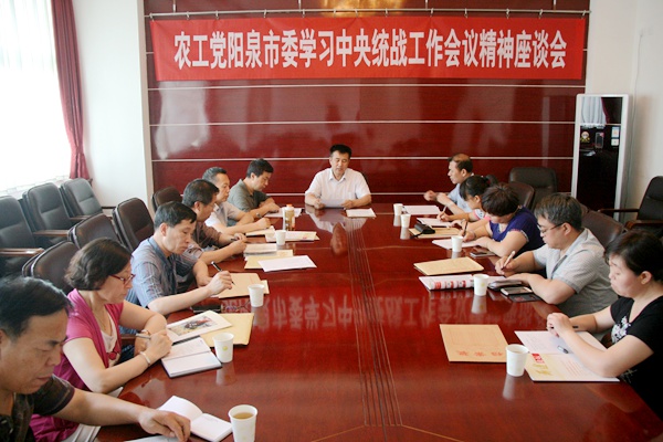 2015年6月5日,农工党阳泉市委会组织市委会委员、基层支部负责人召开座谈会,专题学习中央统战工作会议和习近平总书记重要讲话精神。农工党阳泉市委会主委李继红主持会议。