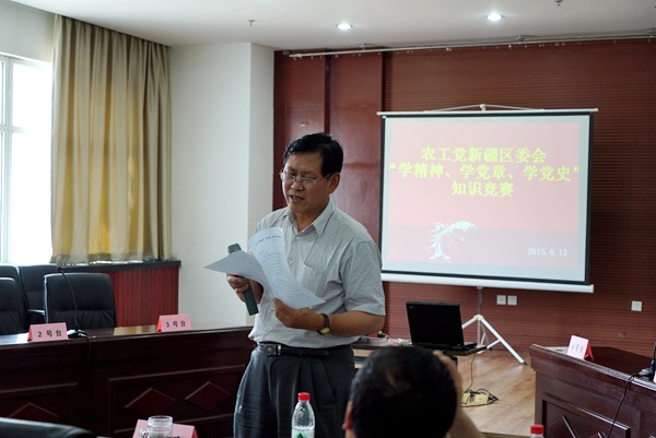 2015年6月12日下午,农工党新疆区委会“学精神、学党章、学党史”知识竞赛在民主党派三楼会议厅举行。区委会副主委王平道出席并讲话。