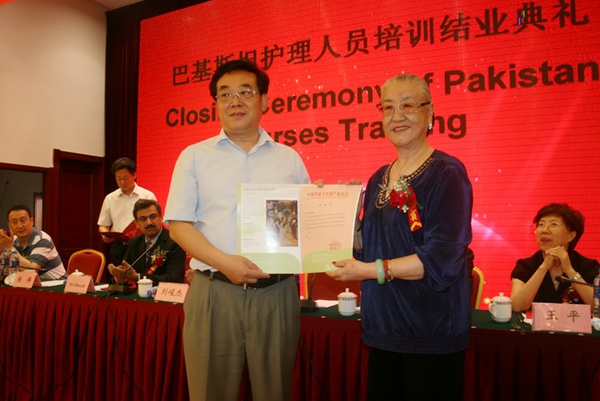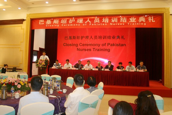 2015年6月19日下午,农工党天津市委会等单位联合在天津市汇高酒店,举办了首批巴基斯坦医疗护理人员培训结业典礼。中国华夏文化遗产基金会会长耿莹,原联合国副秘书长、中巴友好协会会长沙祖康,巴基斯坦驻华使馆代表肖则夫•阿巴斯,农工党中央社会服务部部长刘峻杰,中共天津市委会统战部副部长王平,天津市第一中心医院书记陆伟,农工党天津市委会副主委侯欣一等出席典礼并分别讲话。典礼由农工党天津市委会常委、天津市第一中心医院副院长郑虹主持。