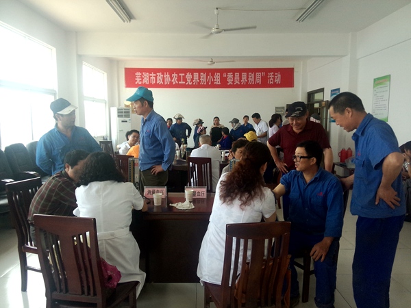 2015年6月19日,芜湖市政协常委、农工党芜湖市委会专职副主委张红率领部分农工党界别的市政协委员赴位于芜湖市高新技术开发区的爱德运输机械有限公司开展“委员界别周”活动。在调研高新技术企业生产情况的同时,积极发挥医卫界别优势给企业员工送上健康关爱。