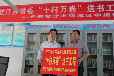 今年,省委会再一次向通、连、盐、宿四市以及省市区三级农工党组织共同帮扶的常州市武进区雪堰镇城西回民村、省委会扶贫工作联系点淮安市涟水县石湖镇淮泽村等13个行政村捐赠图书1.9万册,价值60万元。书籍内容涉及文化、历史、励志和农民致富等方面。农工党江苏省委会意在通过这项工程的实施,对促进沿海和宿迁地区的农村文化建设做出自己的贡献。