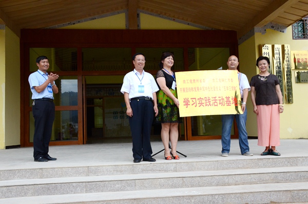 2015年8月16日,由农工党贵州省委会、铜仁市委会共建的开展坚持和发展中国特色社会主义“五学三贡献”学习实践活动基地挂牌仪式在铜仁市江口县隆重举行。农工党贵州省委会副主委黄惠玲出席仪式并讲话,农工党铜仁市委会主委王能军主持仪式。中共江口县委常委、县委组织部部长杨秀明应邀出席并致辞。