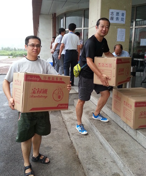 2015年报819日,农工党天津市红桥区委会5名党员到滨海新区“8·12”事故最大的临时安置点---天津滨海职业学院,慰问受灾群众和志愿者们,捐赠了价值3000元的日用品,并协助安置点工作人员进行捐赠物品登记及搬运工作。(农工党天津市委会
