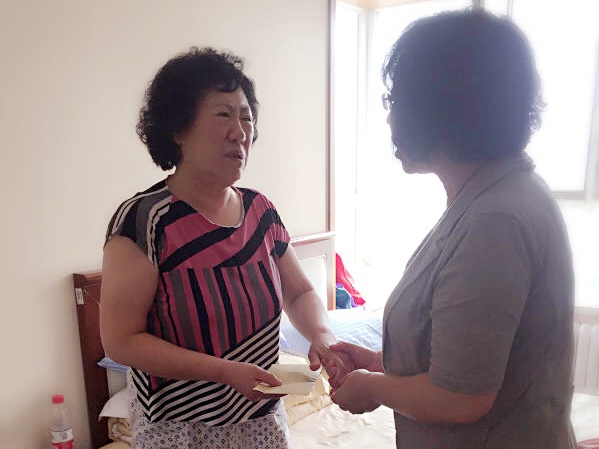 2015825日,农工党天津市滨海新区委员会专职副主委高贵玲代表区委会,带着慰问品,到“812”爆炸事故中受伤党员谷守凤家中进行慰问,送上了农工党组织的关怀。谷守风对组织的关心表示感谢。(农工党天津市委会)