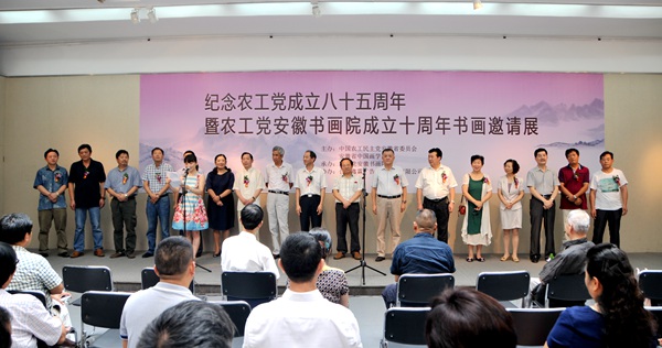 中共安徽省委统战部及省市相关部门领导出席开幕式并观看展览。农工党著名画家吕士民、郑肇基以及参展书画家、省直基层组织和市级组织代表、受邀来宾400余人参加了开幕式并观看了展览。(宋海珊)
