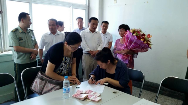 “8.12”天津港瑞海公司危险品仓库爆炸事故发生,瞬间夺去百余人生命,大多为消防战士和公安干警,目前仍有危重伤员在武警后勤学院附属医院进行救治。农工党河东区委会获悉后,发扬“一方有难,八方支援”的传统美德,经区委会研究决定将党员们的41181.20元的捐款,全部捐赠给目前仍在武警医院救治Ⅲ度烧伤面积达60%合并多种疾患的消防战士赵长亮。