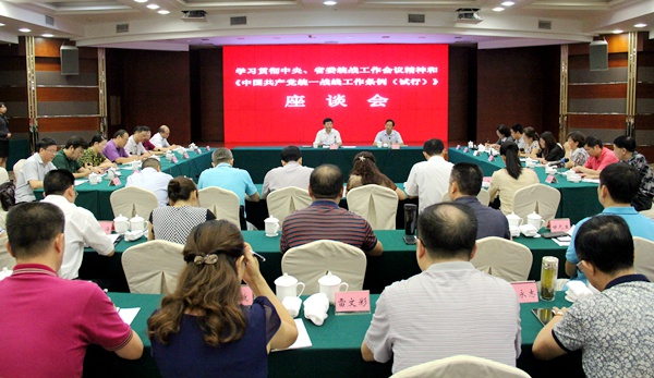 2015年9月9日上午,泸州市统战系统学习座谈会召开,会议专题传达学习中央、省委统战工作会议精神和《中国共产党统一战线工作(试行)条例》,并就全市贯彻落实中央统战工作会议精神进行安排部署。农工党泸州市委会主委何延政出席并发言。