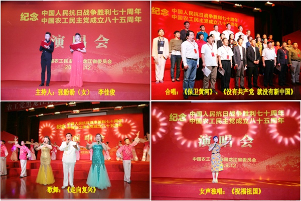 2015年9月12日,农工党黑龙江省委会纪念中国人民抗日战争胜利70周年暨农工党成立85周年演唱会在黑龙江省社会主义学院二楼报告厅举行。