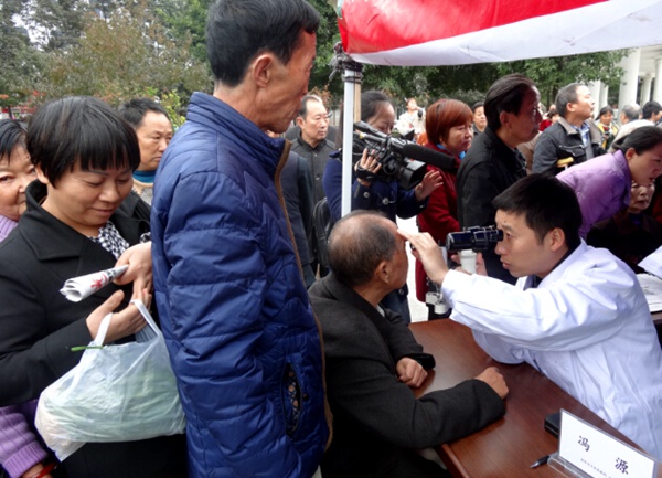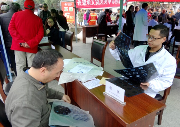 上午九点半,人民广场前已是人头攒动,热闹非凡。“绵阳的专家来免费看病了,机会难得要赶紧去排队。”一位婆婆边走边给朋友宣传。活动现场陈列着活动介绍展板,详细介绍了参与活动的18名绵阳市医疗卫生、法律、营养健康等党员专家。活动还没开始,专家的座位前大家已经自觉的排起了长长的队伍,翘首以盼。上午十点,活动正式开始,党员专家纷纷忙碌起来。党员医疗专家认真细致地为群众把脉问诊、开具处方、测量血压、检查眼睛,还向大家发放健康宣传资料,科普健康卫生知识。特别是几位四川省名中医,许多群众听到他们前来义诊的消息不断地从四面八方赶来,等待的队伍不减反增。2位党员法律专家专程带来了法制宣传资料向群众发放,并耐心细致地研读群众拿来的材料,悉心解答他们咨询的法律问题,并鼓励他们拿起法律武器捍卫自身权益,场面十分热闹。来自绵阳均衡营养学校的高级营养师、健康管理师前更是被前来检测咨询的群众围得水泄不通。由于群众们热情不减,原定于12点结束的活动只得延迟结束,围在会场外的人群久久不愿散去,纷纷询问下次活动时间。