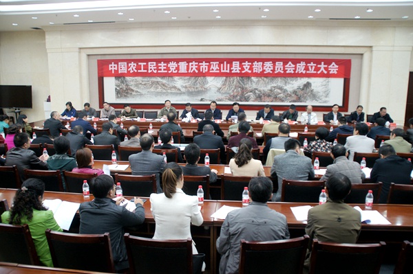 中共重庆市委统战部党派处、干部处、巫山县人大、县政府、县政协、农工党万州区委会等有关单位和部门的领导出席成立大会。巫山全体农工党党员参加大会。(刘盛开)