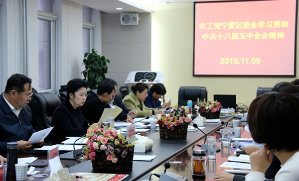 2015年11月9日,农工党宁夏区委会召开六届十七次常委会,学习传达中共十八届五中全会精神,研究部署贯彻工作。区委会主委戴秀英主持会议并讲话。