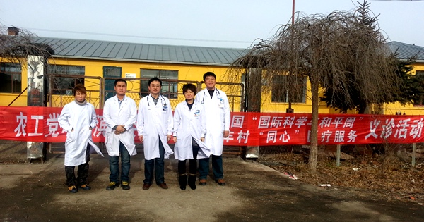 20151115日,农工党哈尔滨市委会组织心内、呼吸、内分泌专家,带着价值2000余元的药品经过两个多小时的车程,赶赴方正县宝兴乡新丰村开展第27届中国“国际科学与和平周”活动及“同心医疗服务行动”义诊咨询活动。(王正波 赵婥)