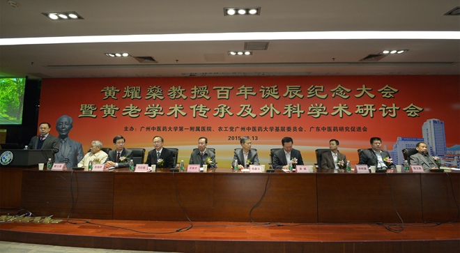 2015年12月13日上午,原农工党广东省委会主委、广东省政协副主席、广东省名老中医黄耀燊教授百年诞辰纪念大会暨黄老学术传承及外科学术研讨会在广州中医药大学第一附属医院举行。广东省政协副主席陈蔚文,广州中医药大学党委书记黄斌,农工党广东省委会专职副主委刘启德、广州中医药大学基层委员会主委赵先明等领导出席会议并致辞。纪念大会由农工党广州中医药大学基层委员会副主委杨忠奇主持。