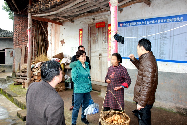 2015年12月12日,巴中市人大常委会副主任、农工党巴中市委会主委经伟宪带队赴舞凤乡宝石村,深入每户贫困户家中开展精准扶贫工作。市委会副主委王经泉参加了帮扶活动。