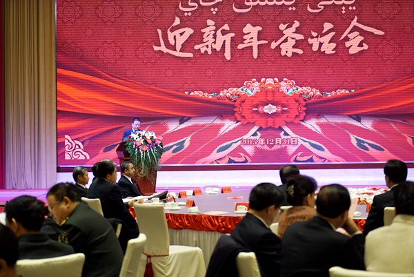 孟庆才代表各民主党派、人民团体在茶话会上作了发言。他在讲话中指出,2015年,在中共中央的坚强领导下,自治区党委带领全疆各族人民,深入学习贯彻习近平总书记系列重要讲话精神,以落实第二次中央新疆工作座谈会精神为主线,坚持“四个全面”战略布局,坚持依法治疆、团结稳疆、长期建疆,坚持稳中求进、改革创新总基调,围绕社会稳定和长治久安总目标,充分发挥主体作用,不断深化对新疆工作规律性的认识,探索了具有中国特色、新疆特点的科学发展路子。坚决维护社会大局稳定,深入推进“去极端化”,着力促进民族团结和宗教和谐,隆重纪念自治区成立60周年,精心筹备召开南疆工作会议,深入开展“三严三实”专题教育,突出抓好“三支队伍”建设,不断深化“访惠聚”活动,新疆改革发展稳定各项事业取得了显著成绩。