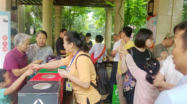 2019年6月1日国际儿童节当天,农工党南宁市良庆区总支联合城区垃圾分类办,到五象新区澜湾九里小区开展“垃圾分类”宣传活动,吸引小区100多名儿童和家长参加。农工党南宁市委会常委、良庆区人大常委会副主任何雪映莅临指导。