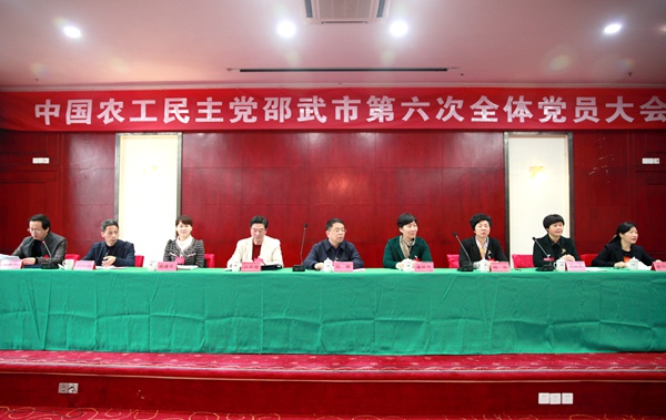 2016年3月20日,农工党邵武市第六次全体党员大会在邵武宾馆隆重召开。农工党福建省委会专职副主委杨琳,南平市政协副主席、农工党南平市委会主委潘丽贞,南平市委会专职副主委杨建平出席会议。邵武市政协主席邓荣堃,邵武市市委常委、统战部部长杨华,邵武市政府副市长刘忠汉,邵武市人大常委会副主任、民革邵武支部主任委员罗群荣应邀莅会指导。