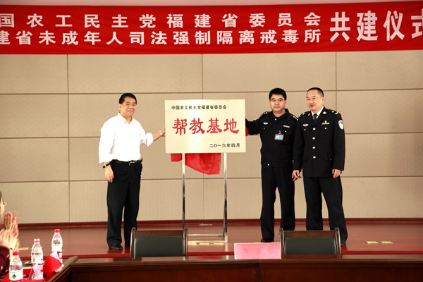 2016年4月14日上午,农工党福建省委会专职副主委杨琳、省委会副秘书长兼办公室主任万姗率省委会社会服务部同志、机关志愿者等来到福建省未成年人司法强制隔离戒毒所(以下简称省未戒所)举行文明共建协议签约仪式暨农工党福建省委会帮教基地揭牌仪式。