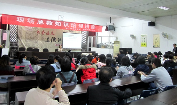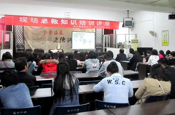 2016年4月19日下午,农工党福建省委会、鼓楼区温泉街道办事处联合举办现场急救知识培训讲座,由省红十字会现场救护培训中心副主任、首席讲师、农工党党员郑明华老师主讲。农工党福建省委会副秘书长、机关文明办主任万姗出席讲座并做讲话。