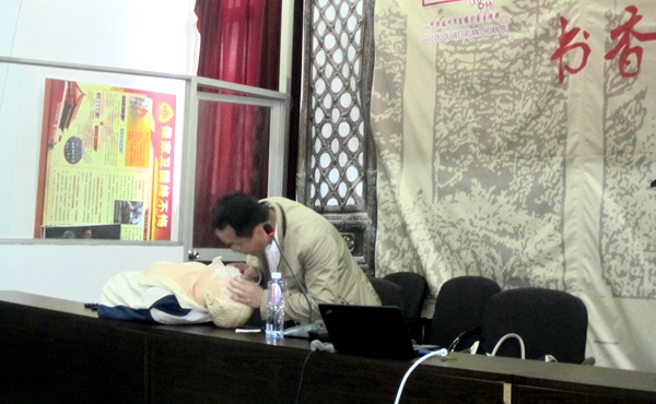 郑明华老师深入浅出地详细分析和讲解了冠心病的发病原因、症状、危险因素、发病后果及如何进行家庭日常自护和救治等方面的知识,重点阐述了当人们在遇到心肌梗死时该如何进行急救和患者家属作为第一目击人掌握心肺复苏技术的重要目的,抓住“黄金4分钟”就能抓住生命的“命脉”,得到有效的救治,为医院进一步救治打下良好的基础,提高猝死病人的抢救成功率。
