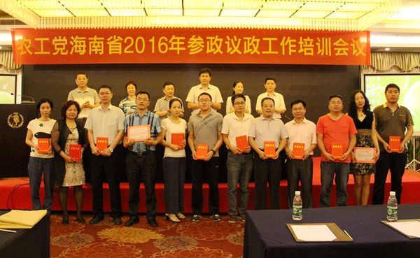 2016年4月16日,农工党海南省委会在海南迎宾馆召开2016年参政议政工作培训会议。省委会专职副主委毕华,省委会副主委、秘书长吉小妹,省委会机关副巡视员林燕晨出席会议。中共省委统战部党派处副处长解德春应邀出席会议。