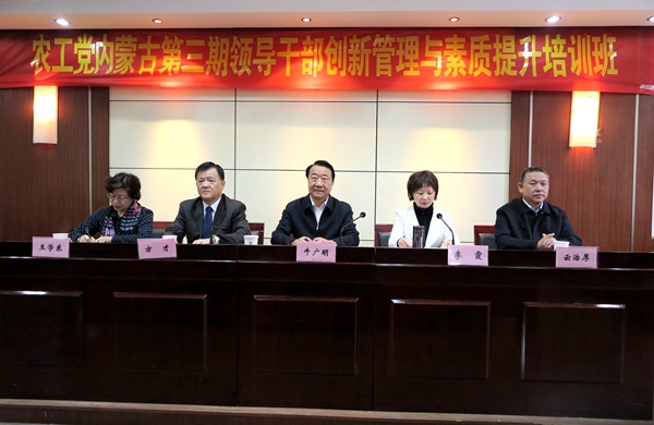 2016年4月25日,农工党内蒙古区委会在安徽社会主义学院举办第三期领导干部创新管理与素质提升培训班。内蒙古自治区政协副主席、农工党内蒙古区委会主委牛广明,农工党内蒙古区委会副主委云治厚、王学东出席了开班式。