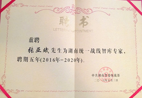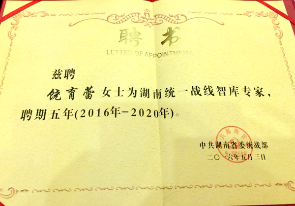 启动仪式上,黄兰香为首批获聘的18位湖南统一战线建言献策智库专家颁发聘书。省委会常委、湖南大学教授、博导张亚斌和省委会常委、中南大学教授、博导饶育蕾成为首批获聘的湖南统一战线建言献策智库专家。(曹雄)