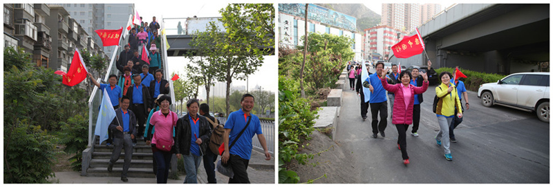 启动仪式结束后,随着"开始"命令的发出,党员们以高昂的士气和饱满的激情,沿着既定路线浩浩荡荡向目的地进发。经过两个多小时徒步行走到达终点后,大家在欢声笑语中交流心得、总结经验,沉浸在一种乐观积极、团结友好的和谐氛围中。