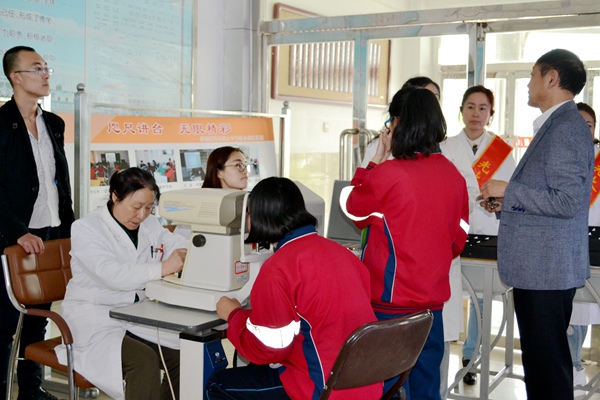 活动现场,在专业验光师的指导下,从检查视力,到测试瞳距,再到判断有无散光、弱视,学生们全程都积极配合。此次“光明行”活动共为36名贫困近视学生免费送去“光明”,还向学校师生发放了视力检测表50余张。
