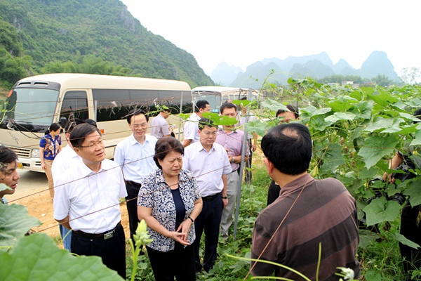 调研组考察了大化县民族新城规划和农民工创业园、六也乡边弄村山葡萄产业和大化特色农业核心示范区,并召开座谈会。会上河池市和大化县领导对扶贫工作做了汇报,自治区相关部门也就扶贫工作进行了交流。彭钊充分肯定了河池市在扶贫方面取得的成绩,并提了三点要求,一是在精准识别基础上按时间节点要求完成脱贫摘帽任务。对照脱贫标准,按照时间进度推进;二是落实扶贫基础设施和产业发展项目帮扶工作。地方政府要主动与自治区对口帮扶单位对接;三是充分发挥科技在石漠化地区扶贫中的作用。彭钊还代表广西政协和农工党广西区委对在座的各位同志给予广西政协和农工党组织议政建言工作的大力支持与帮助,表示衷心的感谢。最后,李康指出,农工党广西区委会围绕中共自治区委、政府重大决策,积极深入开展调研,提出的关于石漠化地区精准扶贫的提案非常好。当前,脱贫攻坚是最大的政治责任、最大的民生工程、最大的发展机遇。河池市和自治区相关部门要认真学习、研究,并积极采纳农工党关于石漠化地区精准扶贫的建议。(唐江涛)