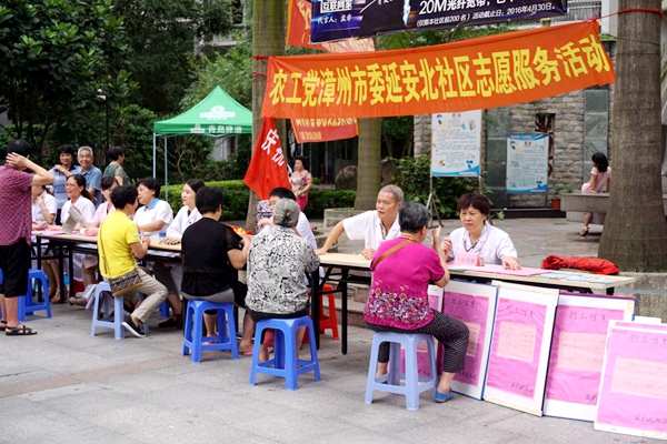 2016527日,农工党漳州市委会组织农工党党员志愿服务队前往延安北社区开展志愿服务活动。活动现场,来自农工党漳州市中医院支部、芗城总支人民医院支部和科教支部的党员医生,现场为社区群众提供内科、骨科、神经科等方面的义诊咨询服务,认真诊断病情,详细解答疑问,给出治疗意见,并免费提供量血压等服务,吸引了100余名群众前来参加,受到广泛好评。(农工党漳州市委会)