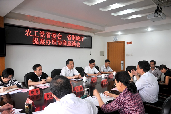 2016年6月3日上午,福建省财政厅党组成员、副厅长韩健带领省财政厅农业处处长陈书华等一行五人,专程到农工党福建省委会就提案《关于推动我省有效实施精准扶贫的建议》进行办理协商。农工党福建省委会专职副主委杨琳、机关各部室负责人与韩健副厅长一行进行了热烈而富有成效的座谈交流。