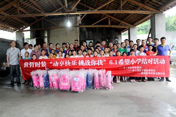 201661日,农工党杭州市委会,会同江干区基层委和党员金国伟创办的杭州世哲时装有限公司的志愿者,冒着暴雨,长途跋涉来到建德李家镇长林村,走进李家镇世哲希望小学开展结对帮扶、捐资助学等爱心活动。
