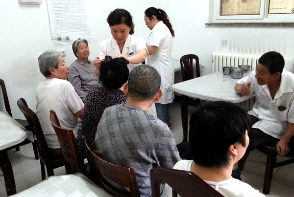2016年6月6日,农工党天津市滨海新区汉沽委员会组织医卫界农工党党员到汉沽敬老院进行义诊。天津医科大学总医院汉沽医院眼科主任王伟娟为50余名“三无”老人和低保人员免费诊断眼病,解答老人眼疾等问题,普及科学用眼知识,现场免费发放眼药水100余瓶。内科医生还为老人量血压。活动受到敬老院领导和老人们的欢迎。(农工党天津市委会)