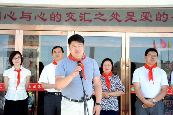 仪式由共青团凉州区委书记齐鹏主持。大连工业大学第二届研究生支教团负责人王晨阳在仪式上介绍了爱心书屋捐建工程的具体实施情况。凉州区政协副主席陈慧英、大连工业大学团委书记张晓丹分别致辞。大连朗迅医药科技有限公司董事长梁志军代表各位企业家做了精彩发言。受赠方向捐赠方颁发了爱心捐赠证书,少先队代表向与会领导和嘉宾敬献了红领巾。