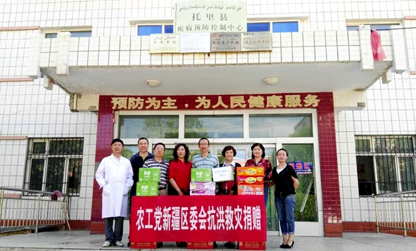 农工党新疆区委会和自治区疾控中心高度重视灾后防疫工作,8月3日,区委会迅速组织防疫党员专家们赶赴受灾现场。区委会常委、自治区疾控中心毒理科主任熊进,区委会副秘书长兼参政议政部部长刘元明,自治区疾控中心消毒与有害生物控制科副主任杨洪彩第一时间赶赴灾情严重的塔城地区托里县,现场指导当地疾控部门开展灾后防疫工作,带去了价值10000余元防疫消毒和防护用品一批,并为当地一线官兵和受灾群众捐赠了价值5000余元的清洗用品和食品。